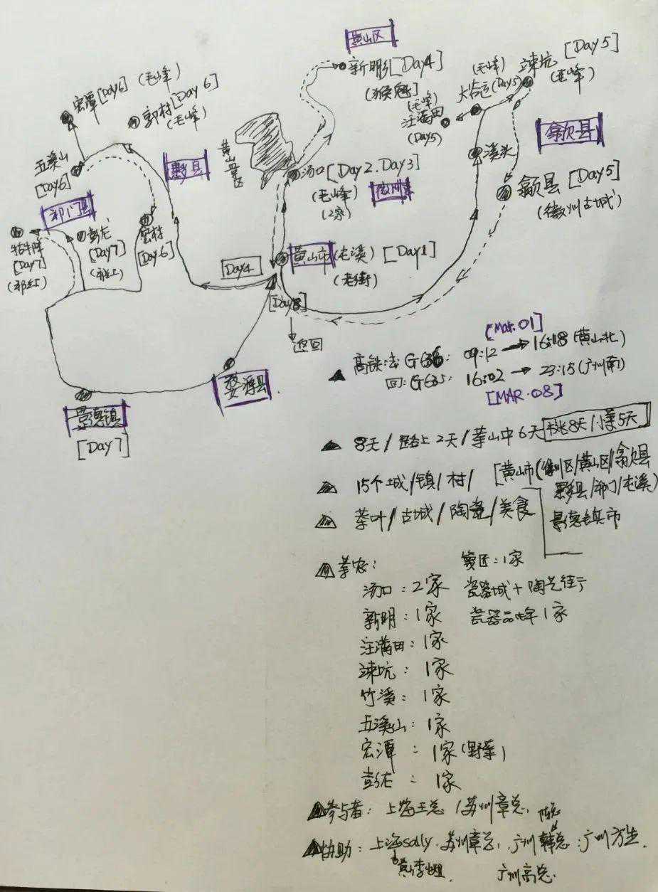 ▲2016年“一或”小团队来到黄山寻找毛峰时设计的路线图。图/一或